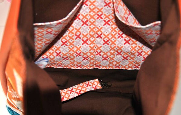 Double poche et mousqueton attache clefs orange